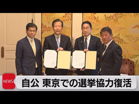 自民党と公明党は党首会談を行い、次の衆議院選挙に向けて東京での選挙協力を復活させることで正式に合意しました。