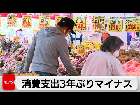 3年ぶりのマイナスです。総務省が発表した2023年度の2人以上世帯の家計調査によりますと、1世帯当たりの1カ月平均の消費支出は、29万4,116円となり、物価の変動を除いた実質で1年前と比べて3.2%減少しました。マイナスは3年ぶりです。長引く物価高が影響し、食料など10項目の全てが落ち込みました。